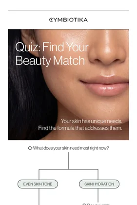 **Image notes:** The hero image occupies the full width and is ~280β320px tall. Woman positioned on right side of frame, facing left, product held near chin. Lighting is soft, warm, professional.