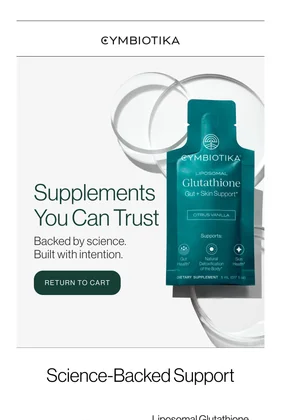 - "CYMBIOTIKA" (white, all-caps, ~20px, weight 600, centered) positioned between button band and social icons