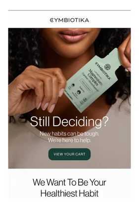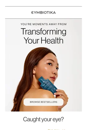 1. **Aspirational imagery:** Professional, lifestyle-oriented hero image of an attractive woman holding the product, positioning wellness as aspirational