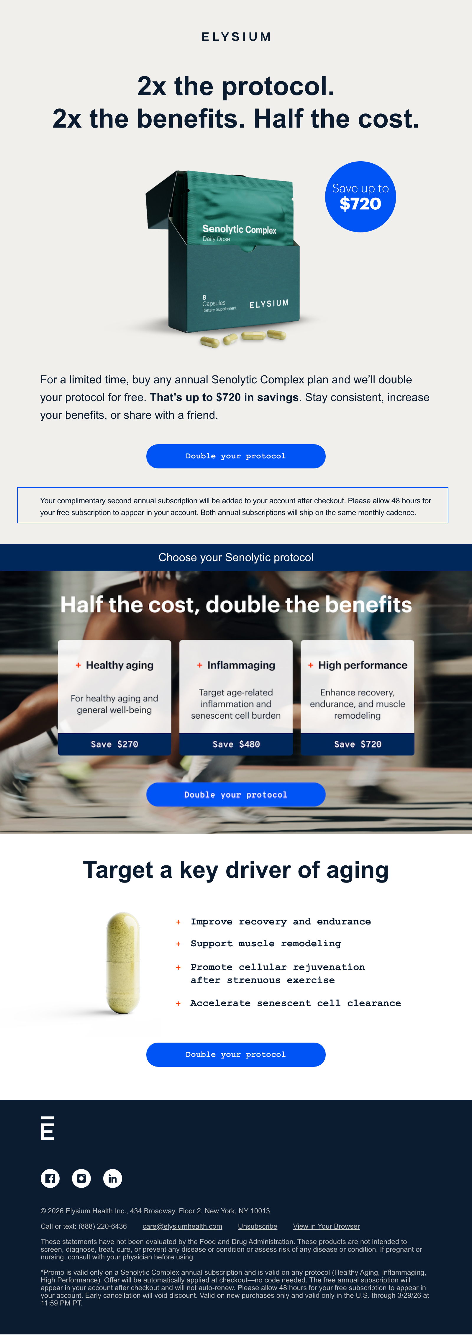 Browse Elysium Health's complete welcome email sequence — every email, subject line, timing, and design deconstructed. See exactly how their 4-email flow converts new subscribers.