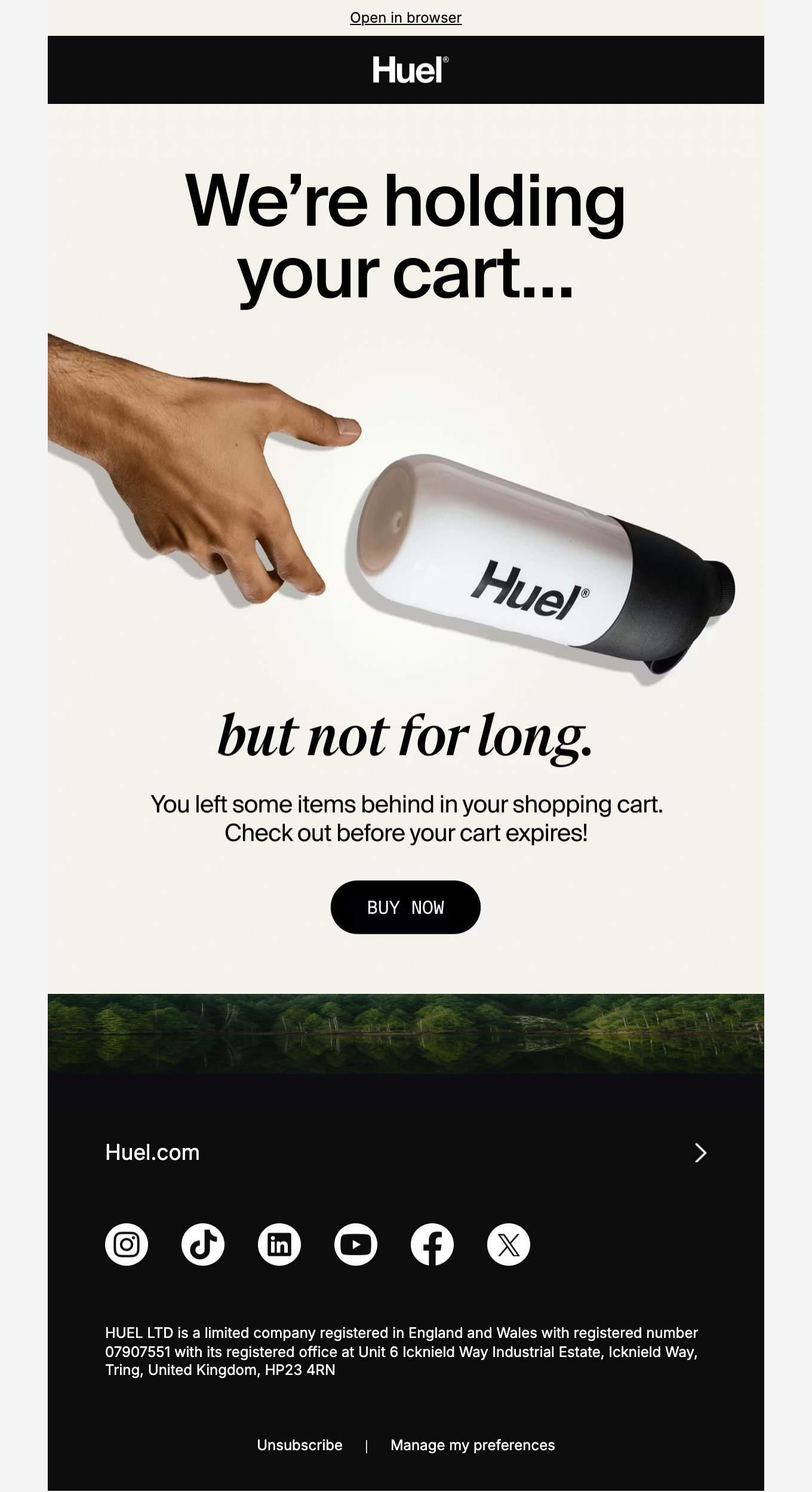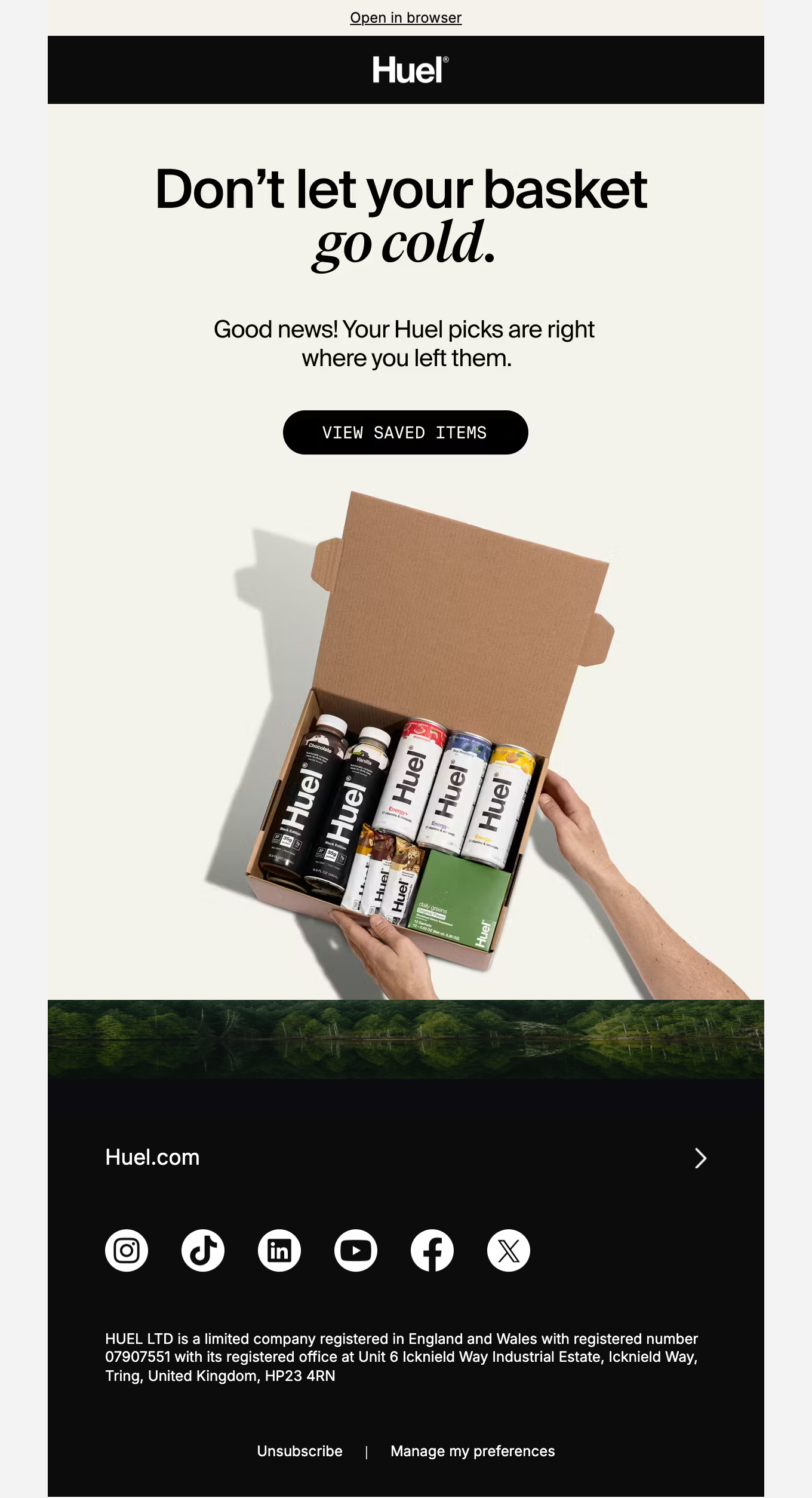 Browse Huel's complete welcome email sequence — every email, subject line, timing, and design deconstructed. See exactly how their 4-email flow converts new subscribers.