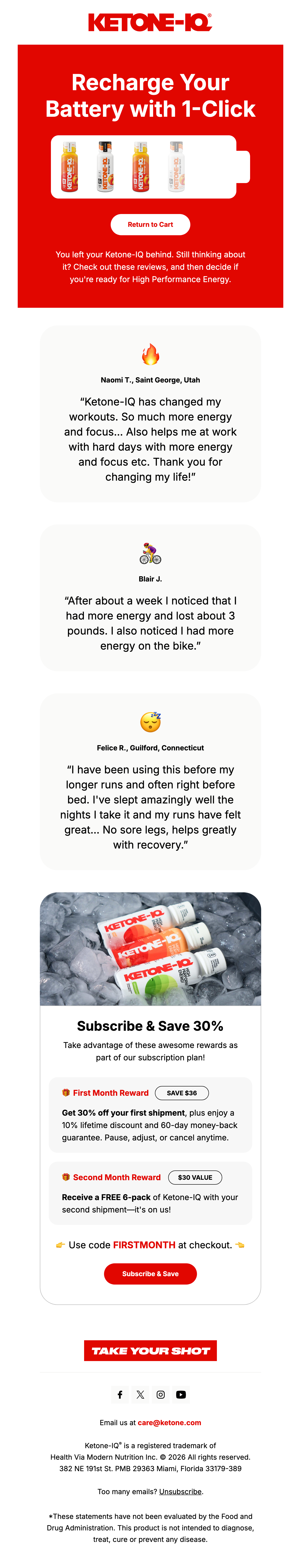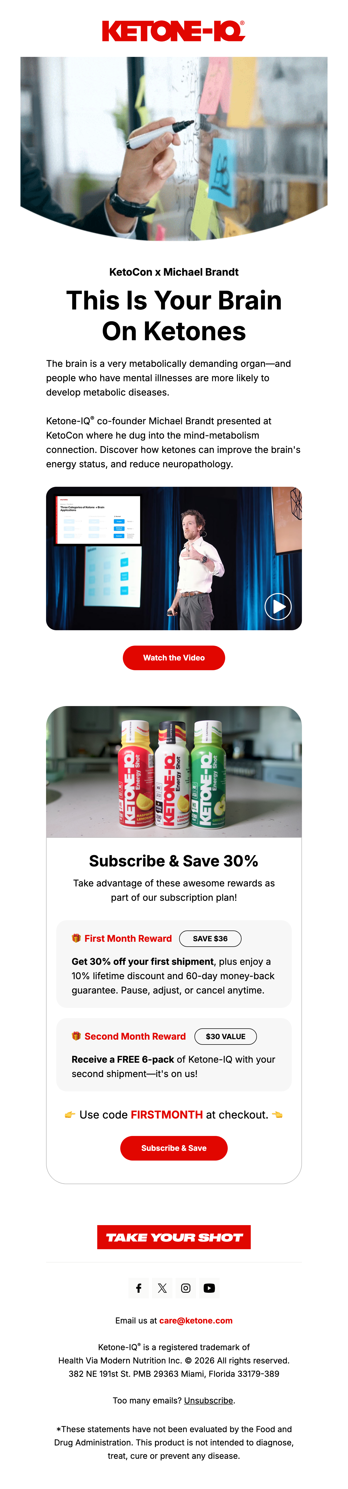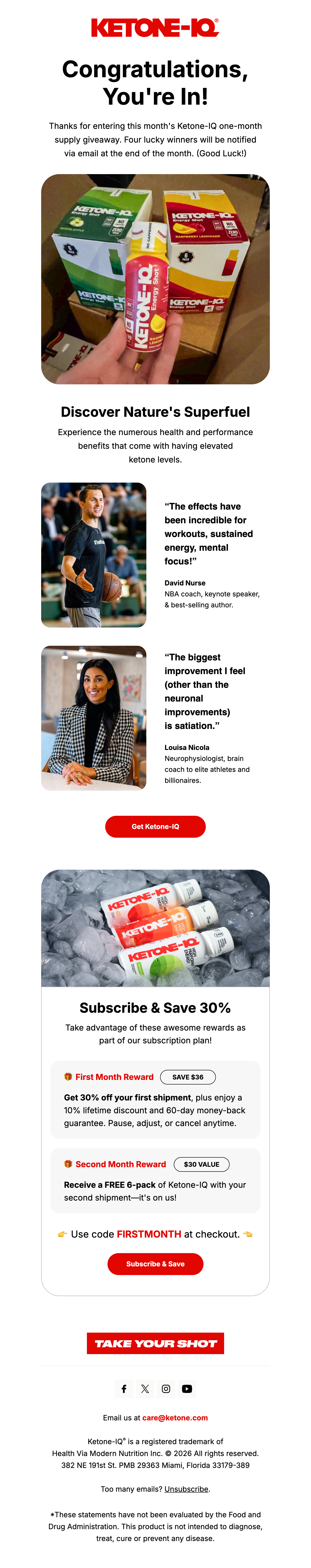 Browse Ketone-IQ's complete welcome email sequence — every email, subject line, timing, and design deconstructed. See exactly how their 4-email flow converts new subscribers.