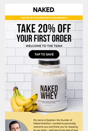 Complete welcome email sequences from top protein supplement and sports nutrition brands. See the exact timing, design, and strategy behind every flow.