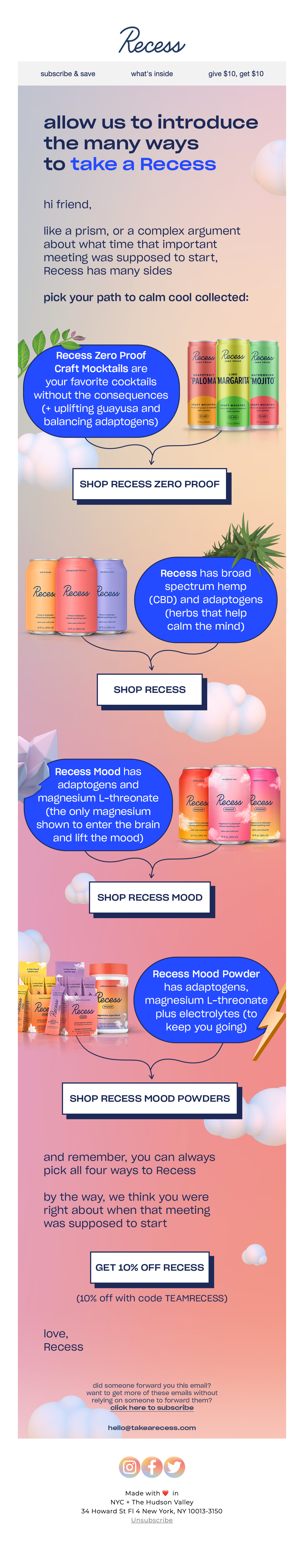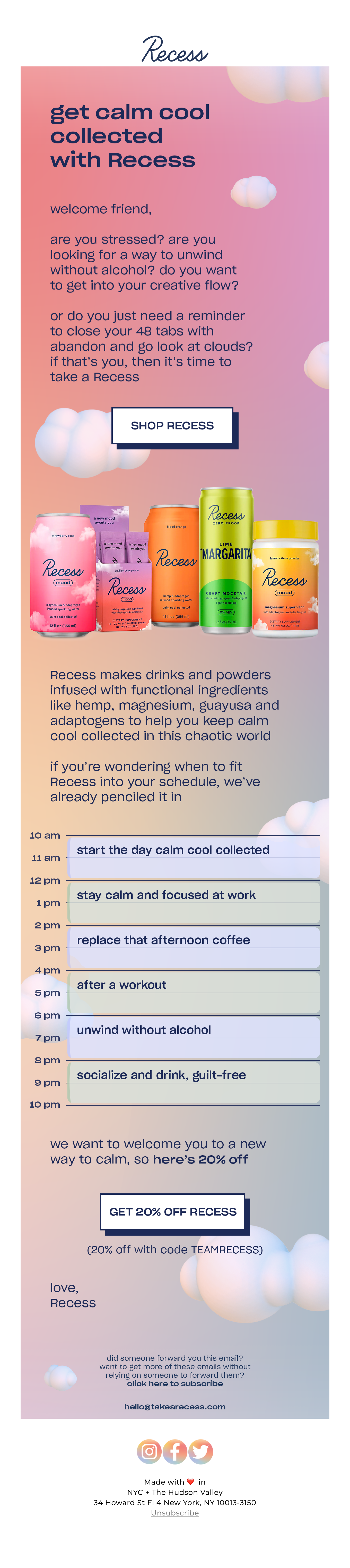 Browse Recess's complete welcome email sequence — every email, subject line, timing, and design deconstructed. See exactly how their 3-email flow converts new subscribers.